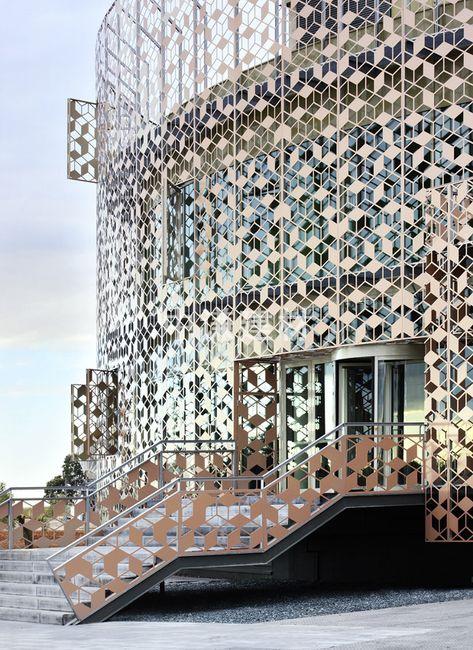 幕墻穿孔鋁板以新穎獨特的設計和簡便的結構得到了迅速的發展,成為了眾多修建物作為幕墻設計的首選。